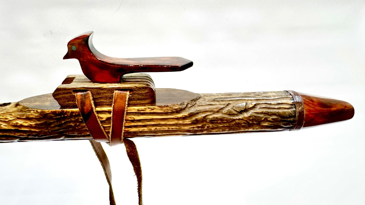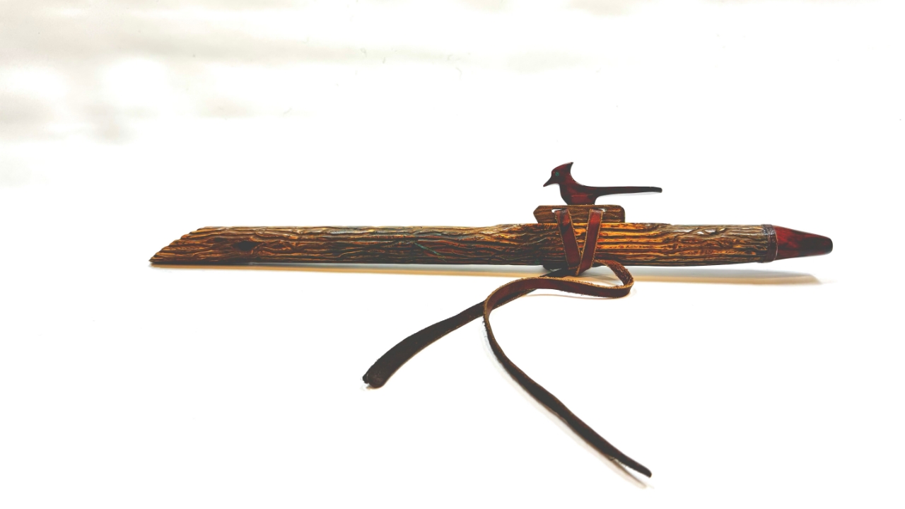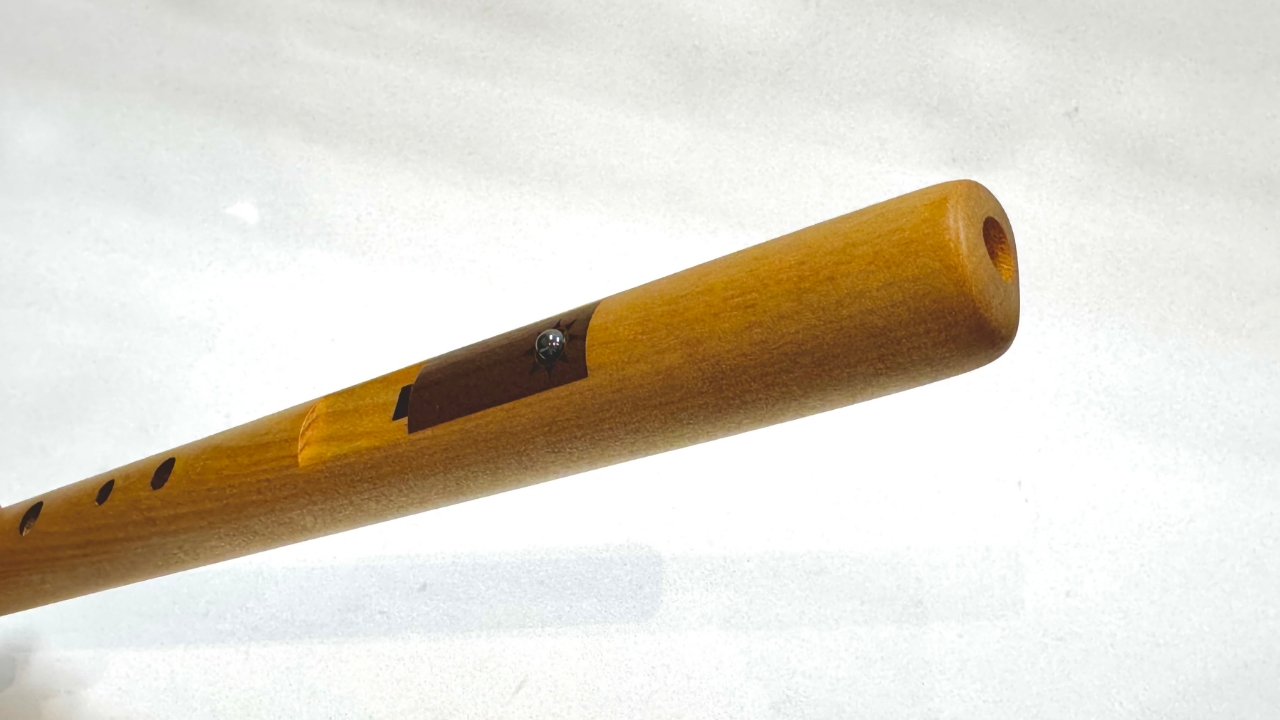 - ウッドペッカーのバード、手彫りのボディ、斜めにカットされたフルートエンド