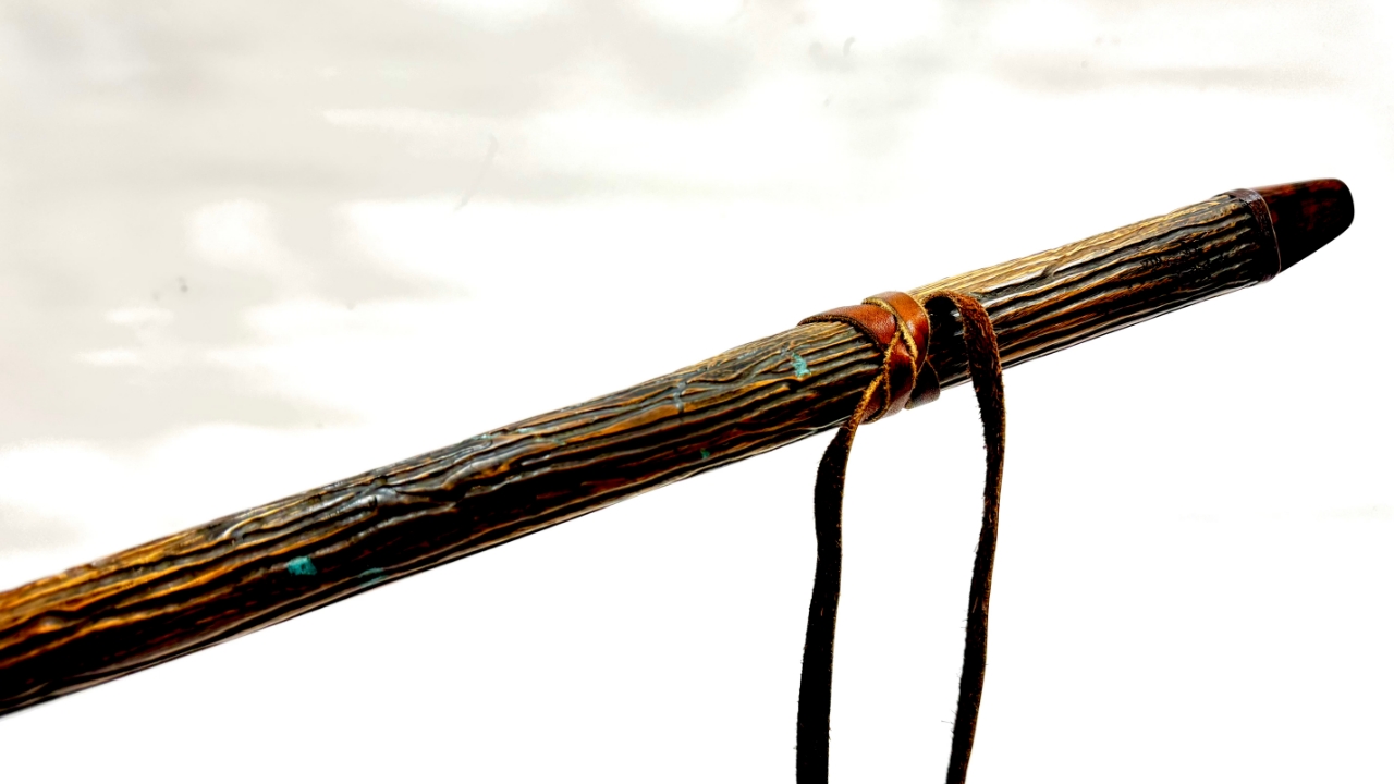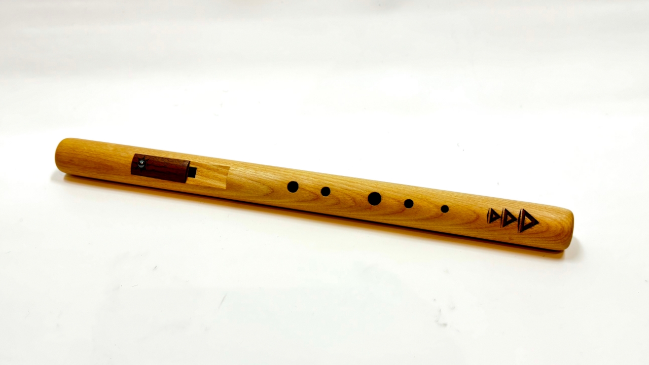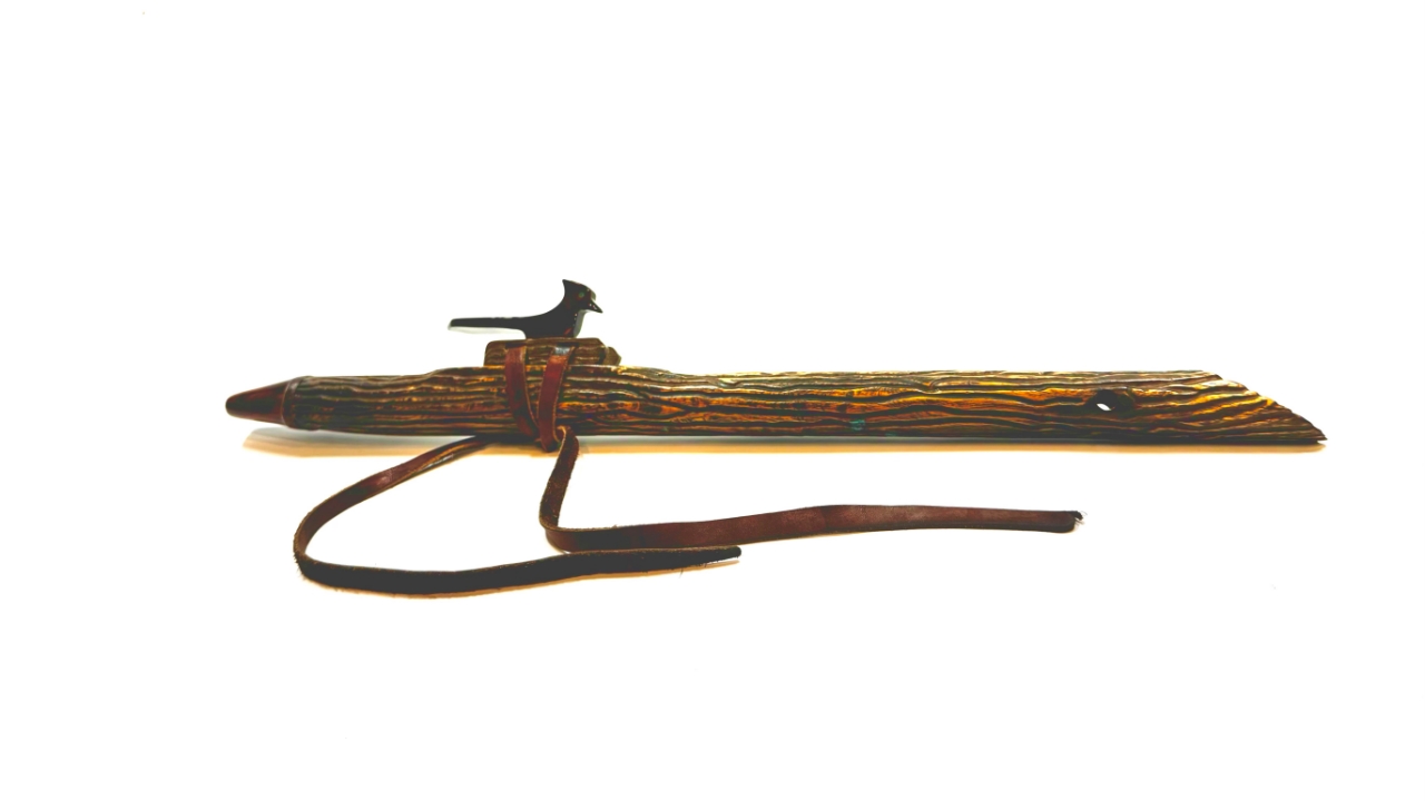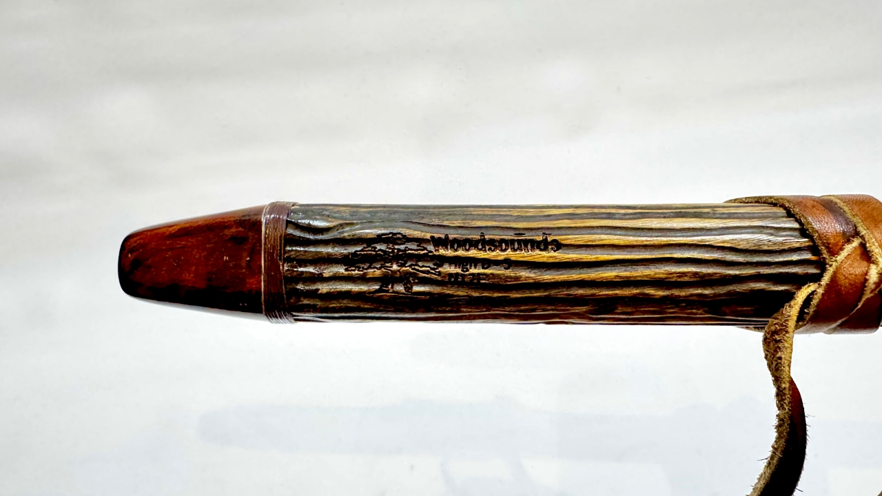 - ウッドペッカーのバード、手彫りのボディ、斜めにカットされたフルートエンド